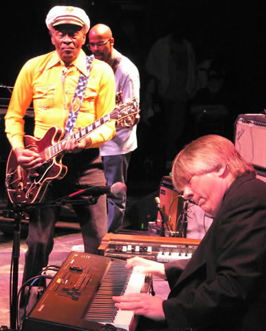 Bob Lohr: Probably with Chuck Berry. First off, I’ve played more gigs with him than anyone else by far (closing in on 100 gigs over 8 years). It’s a blast to have the best seat in the house when he tears the roof off the joint, plus there’s lots of room in his music for piano solos (ha ha). Second, it’s a trip to be onstage with a guy who changed music, period. Third, he treats me extremely well…a great guy to work for.