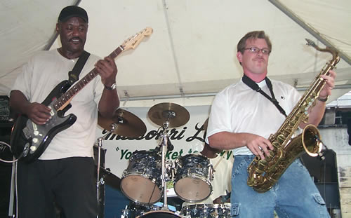 Frank: On Labor Day weekend in 2001, I was scheduled to play the Big Muddy Blues Festival with The Rich McDonough Band, when I got a call from Tom Maloney asking if I could fill in as part of the horn section in Johnnie Johnson’s band at the Madison Blues Festival in Wisconsin. At first I thought that I should turn it down since I was already set to play with Rich. Rich says to me, “What are you even asking me for? Go to Madison!! It turned out to be a great experience for me.